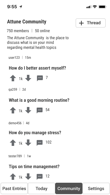 In an effort to bridge the gap, Attune was created to provide journaling capabilities as well as a community discussion forum related to mental health.
