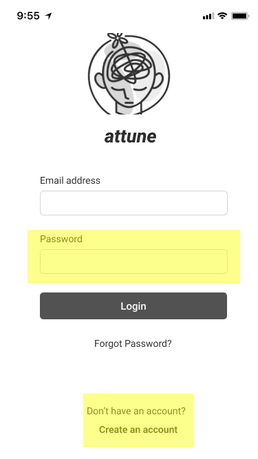 As always, the UX process provides an opportunity to challenge one's assumptions. For example, my experience with onboarding in other apps is rudimentary, but I was prompted to make sure steps to register for an account or create a password requirements in Attune were clear.